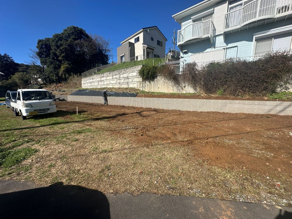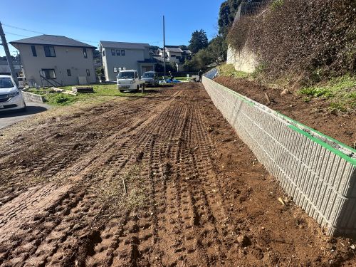 本日は、土地を広げるためのブロック積み工事完成報告ですを行いました。