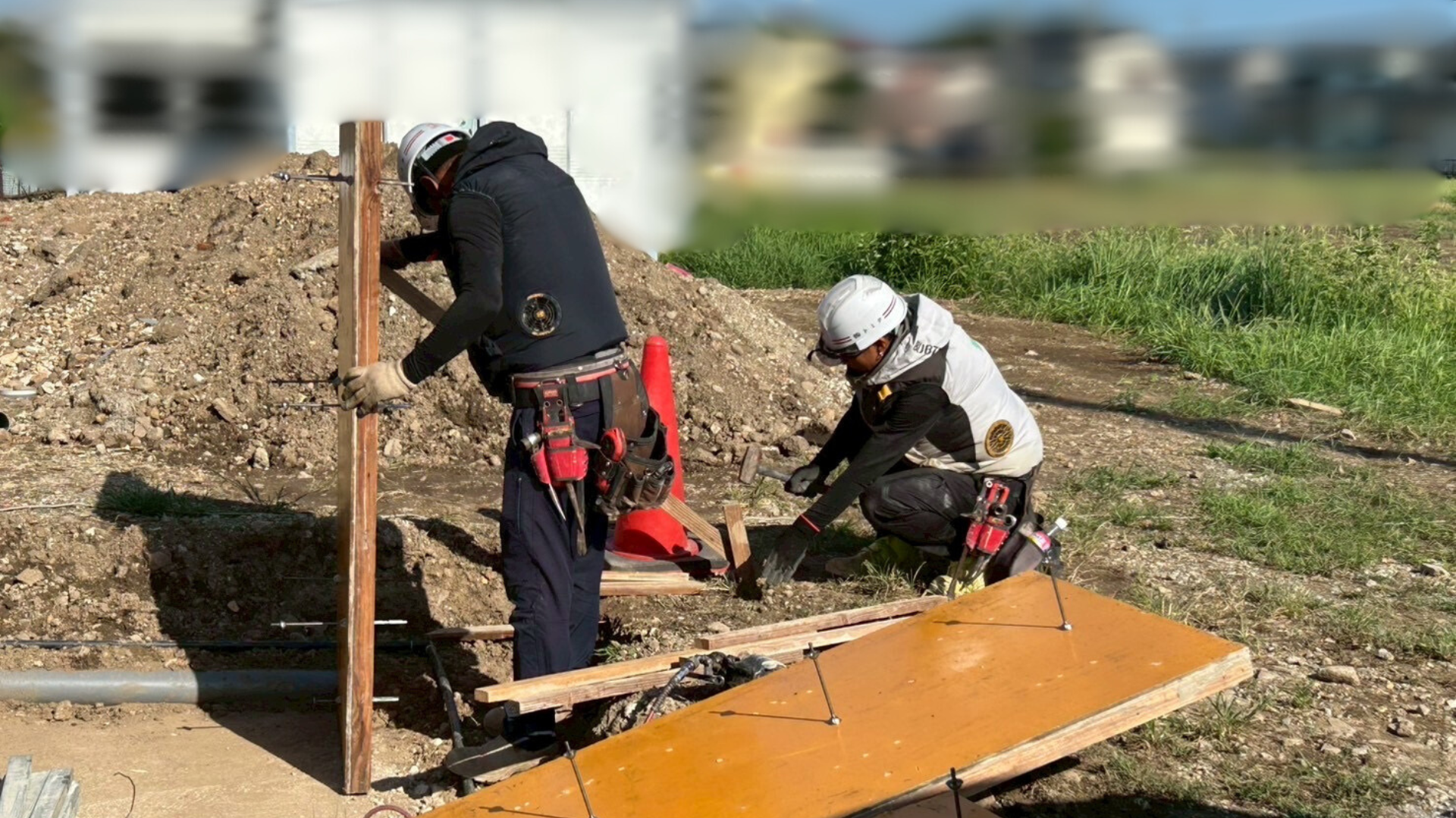 コンクリートを流すための枠を設置します。