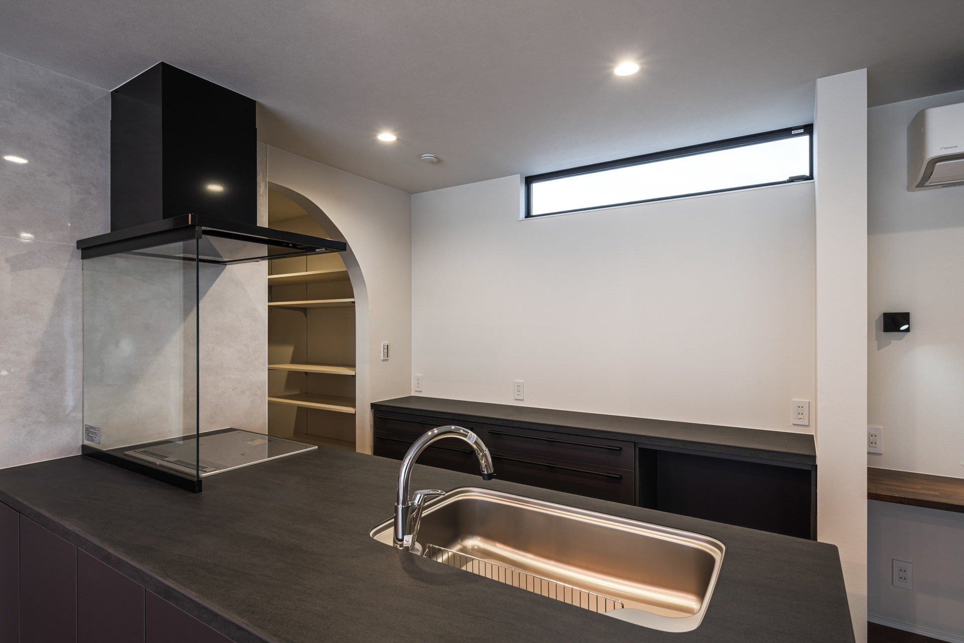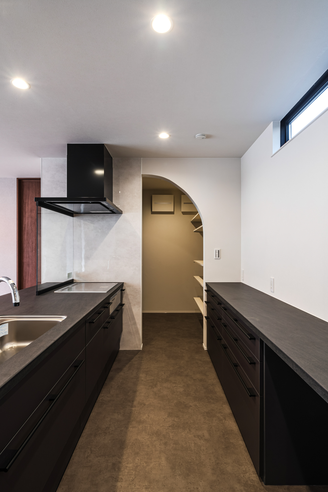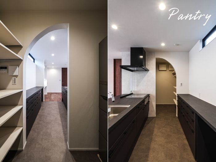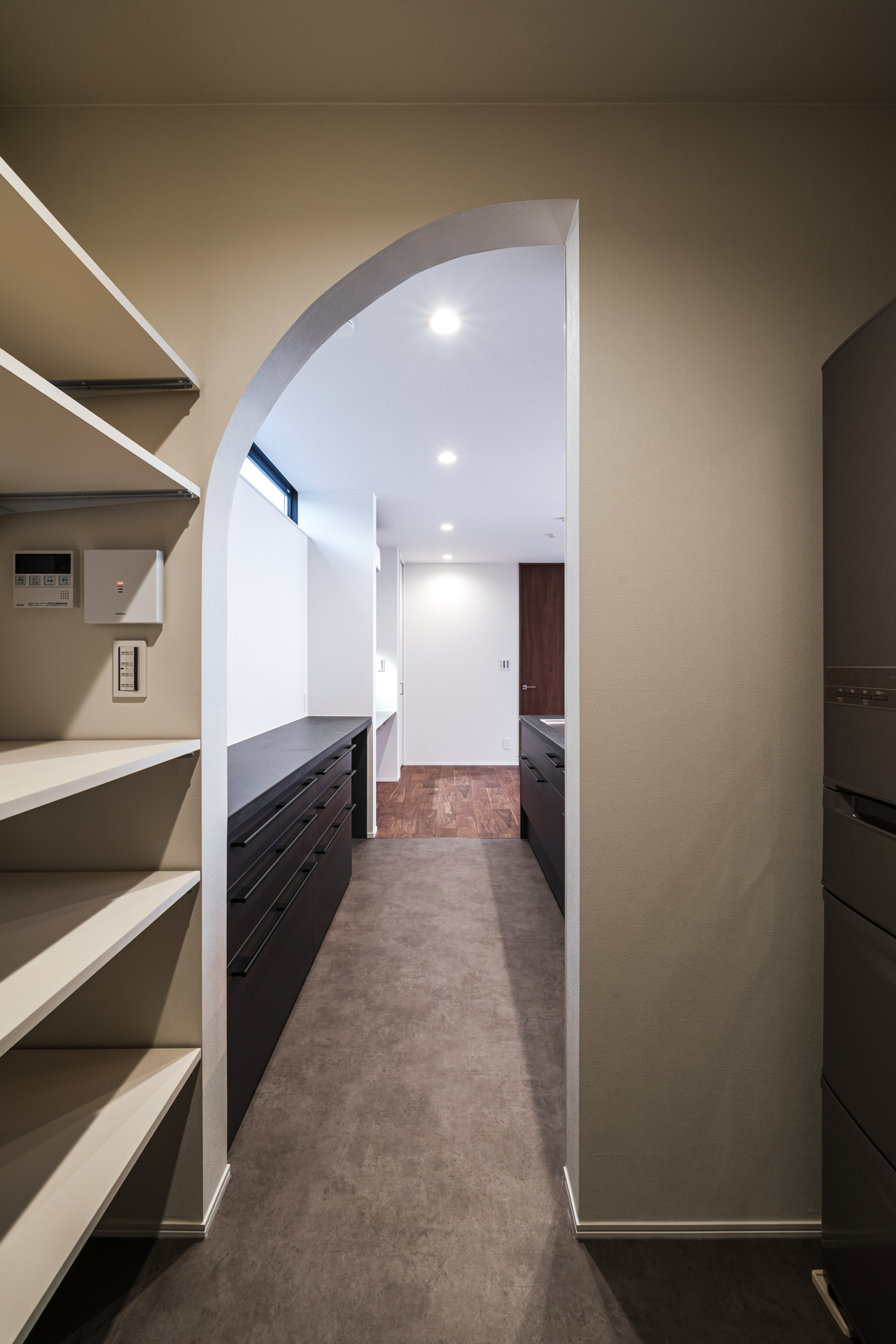 アーチ型の入り口が奥のパントリーへと続いていて、デザインの中にも機能性がしっかり。