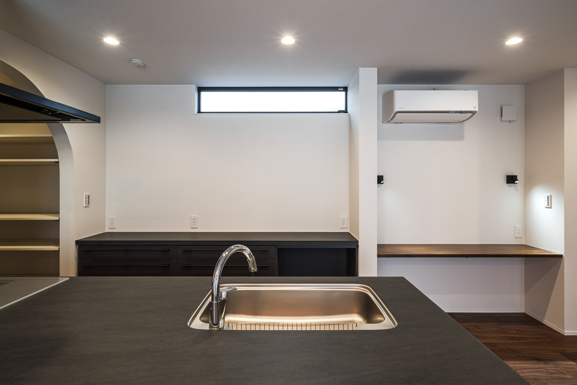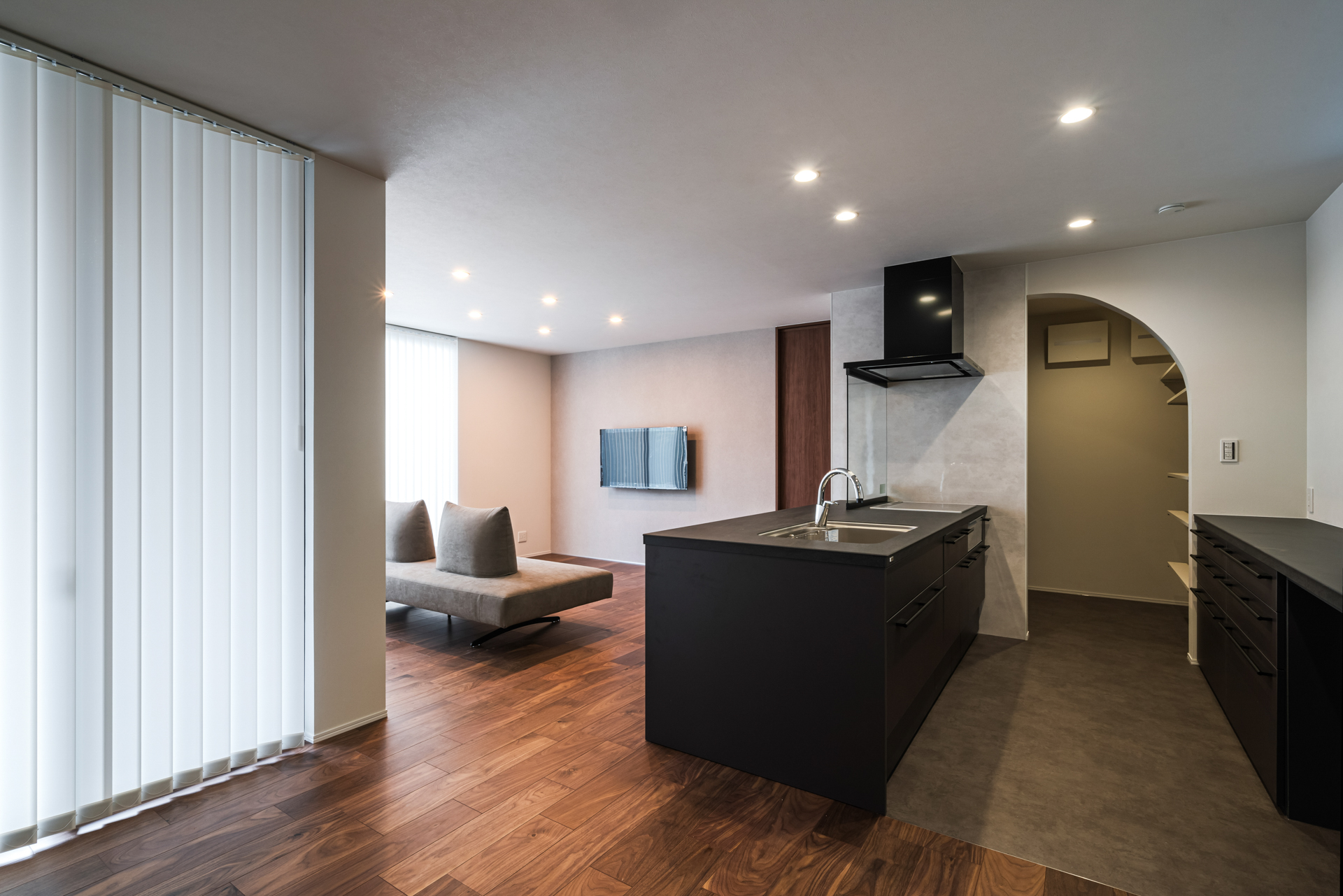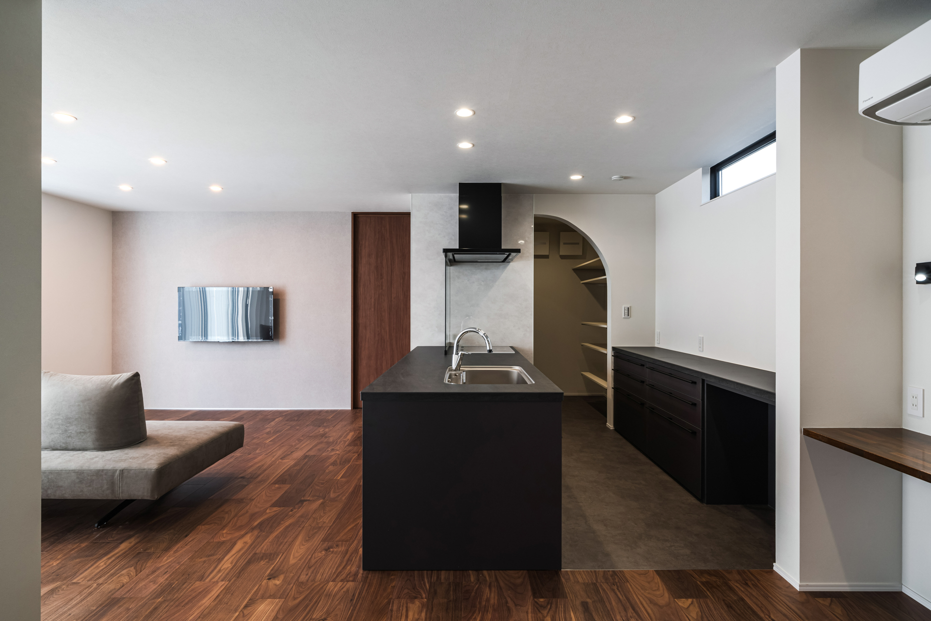 アーチ型の入り口が奥のパントリーへと続いていて、デザインの中にも機能性がしっかり。